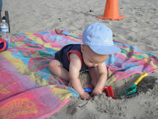 We must go to the beach more often he was so entertained and he loved to put his toes in the water, the cutest thing. The water is cold but he would sit there as it hit him and he would mush his feet down in the wet sand.
